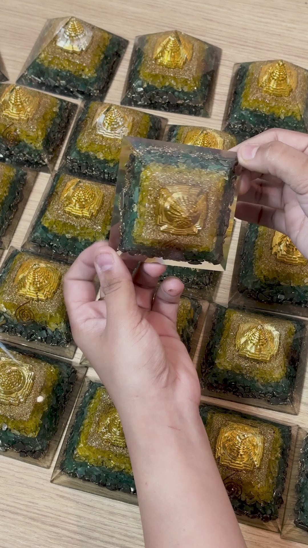When infused into an Orgonite Pyramid—crafted with resin, copper, and sacred geometry—it magnifies energy flow, dissolves blockages, and supports emotional balance. This powerful combination draws financial abundance while radiating serenity, wisdom, and good fortune.
