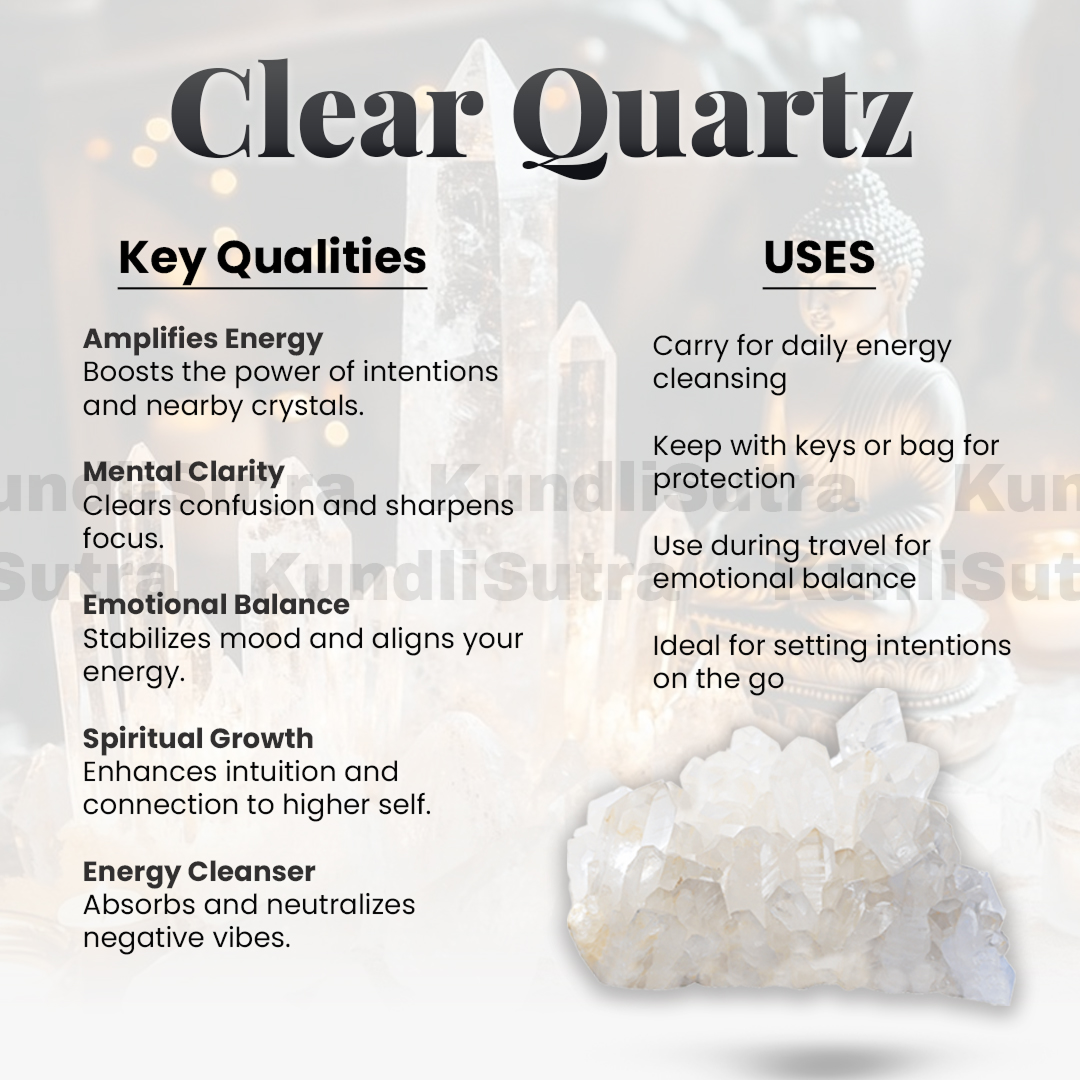 Clear quartz ka energy effect bahut soothing lagta hai. Pocket me carry karna easy aur handy hai.