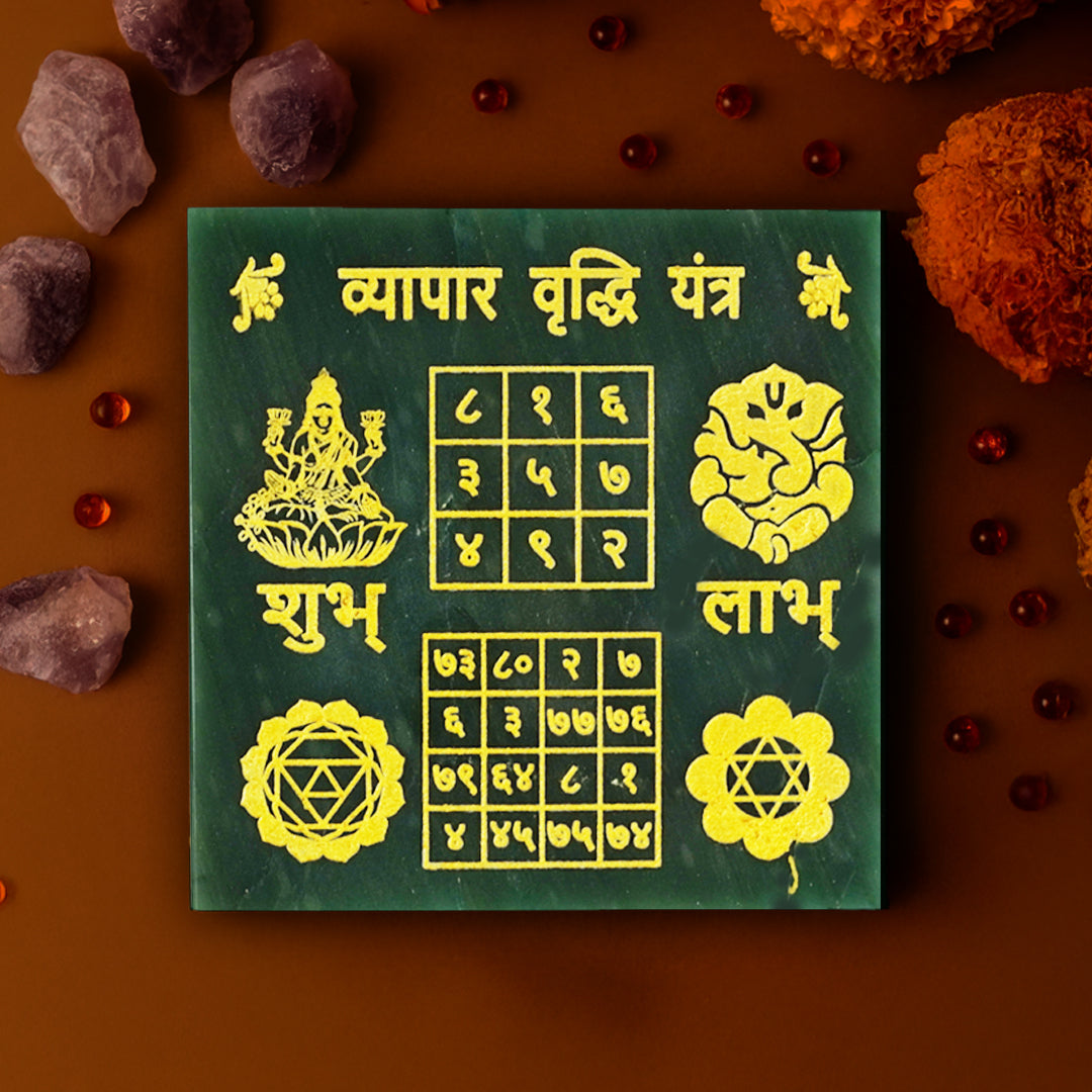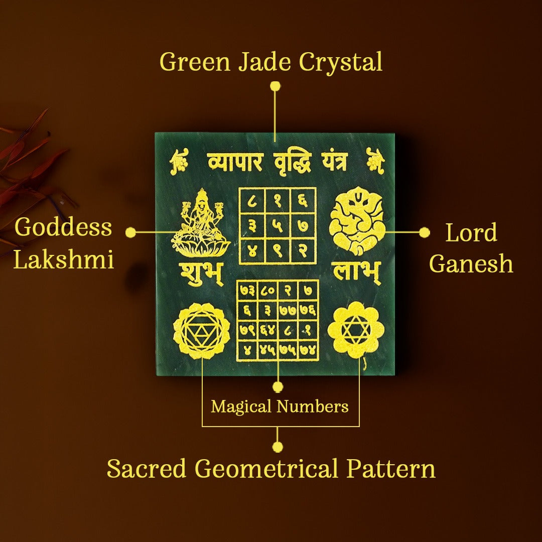 Crystal Vyapar Vriddhi Yantra is best to buy if you are looking for expansion of business in your life. By worshiping this daily, you can have increased clients and sales, resulting in increased turnover and incoming cash flow. Vyapar, as its name indicates, means business, and Vriddhi by its name itself indicates expansion. We, at Kundli Sutra, have come up with the crystal yantra. A yantra is a sacred geometrical pattern, and when it is made on crystal, it becomes more auspicious and powerful. We are providing you with a high-quality stone of Jade crystal used in preparing the Vyapar Vriddhi Yantra. By keeping it at your pooja place or worshiping it daily, you can receive the blessings of Goddess Lakshmi along with Lord Ganesha. With worship, you can strengthen your planet Venus as well as planet Mercury. It helps you attract good money flow and increase your confidence so that you can experience good decision-making abilities.