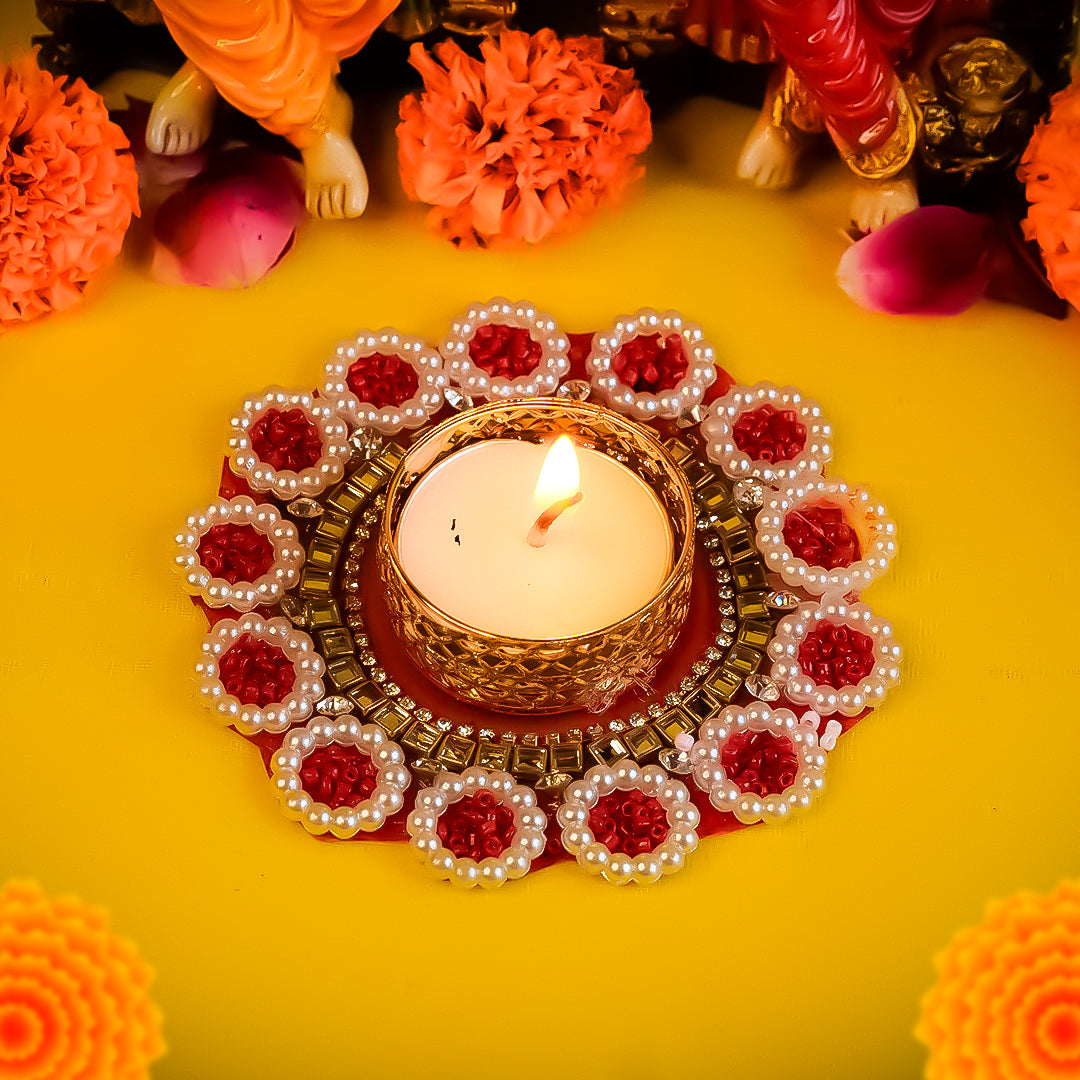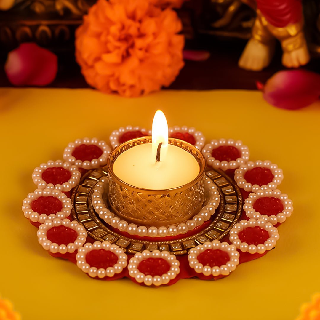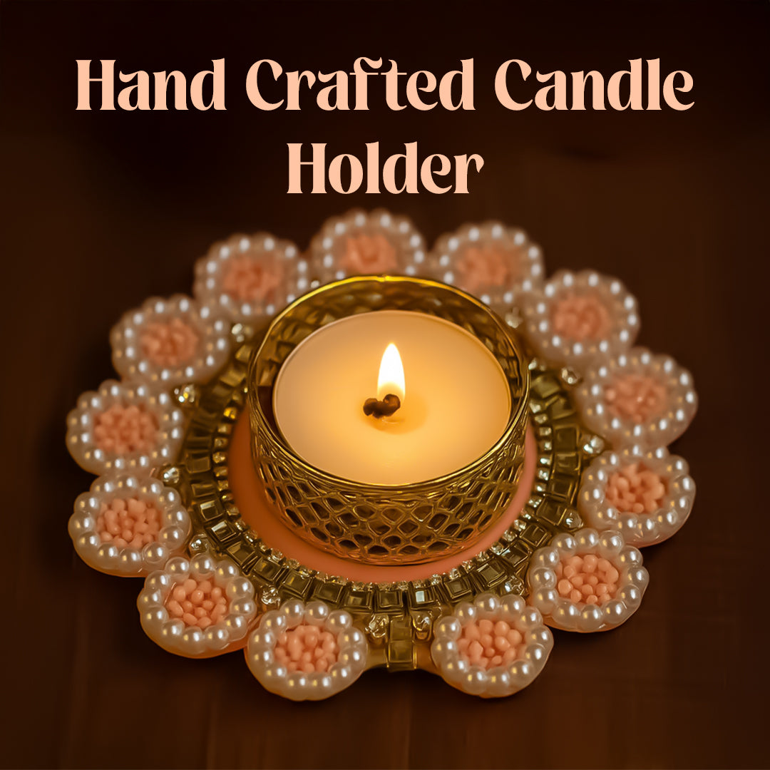 Handcrafted Candle Holder is a perfect home décor item with a blend of beautiful design, elegance, and good aesthetic sense. Its features include a metallic design with a handcrafted base. This candle holder helps you give your space beauty and warmth with a gentle glow when it gets lit. It creates a cozy and inviting atmosphere, making it the perfect décor item for festive seasons, poojas, or any gatherings.