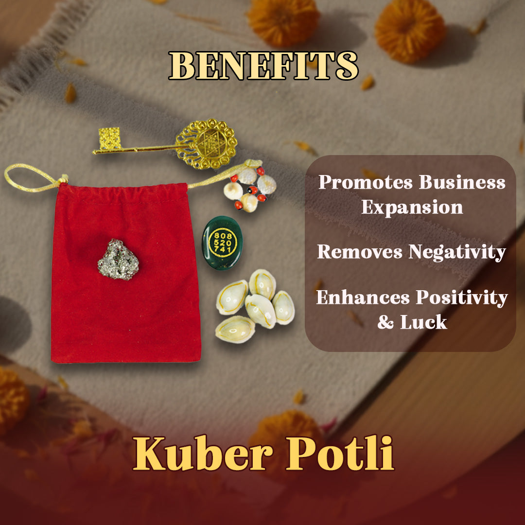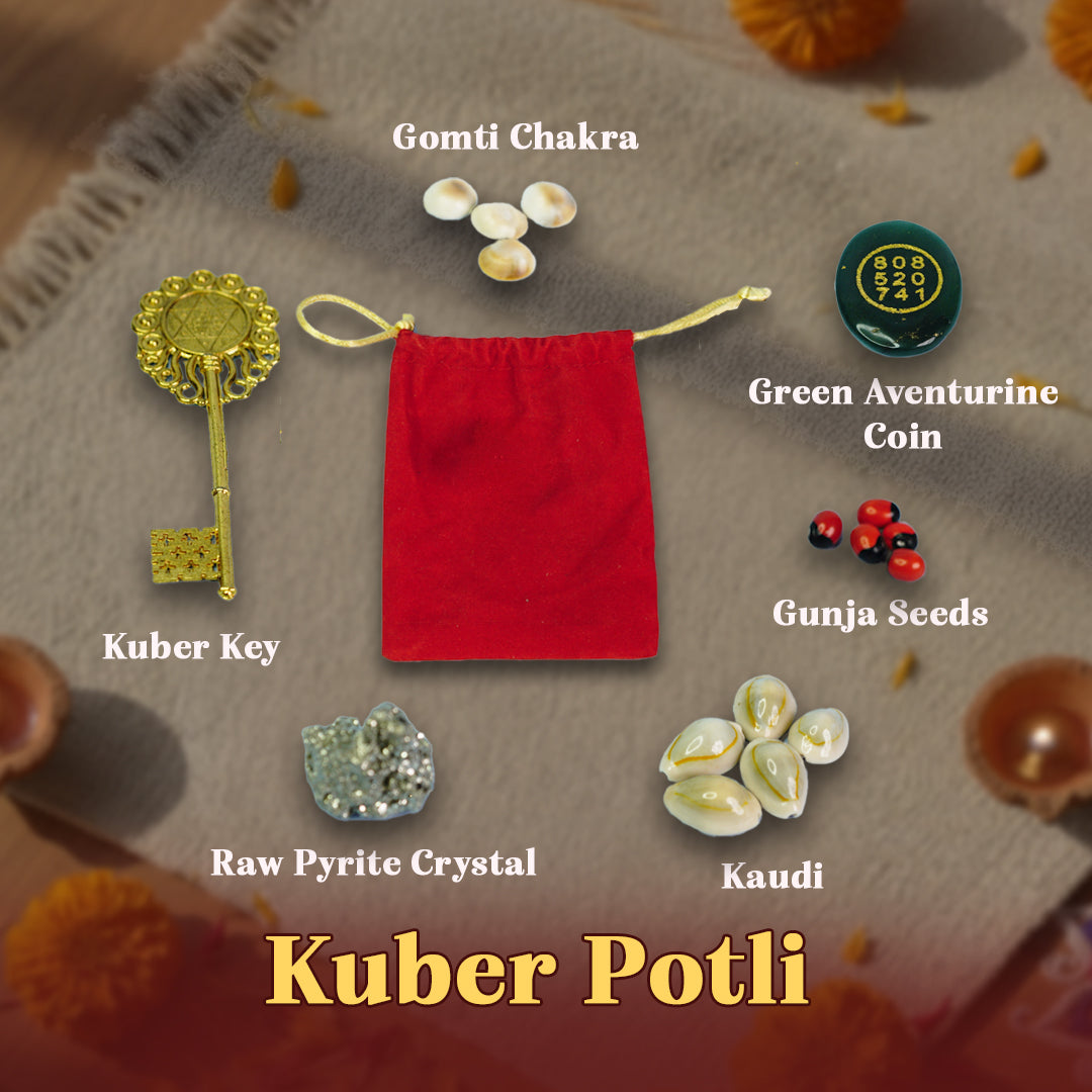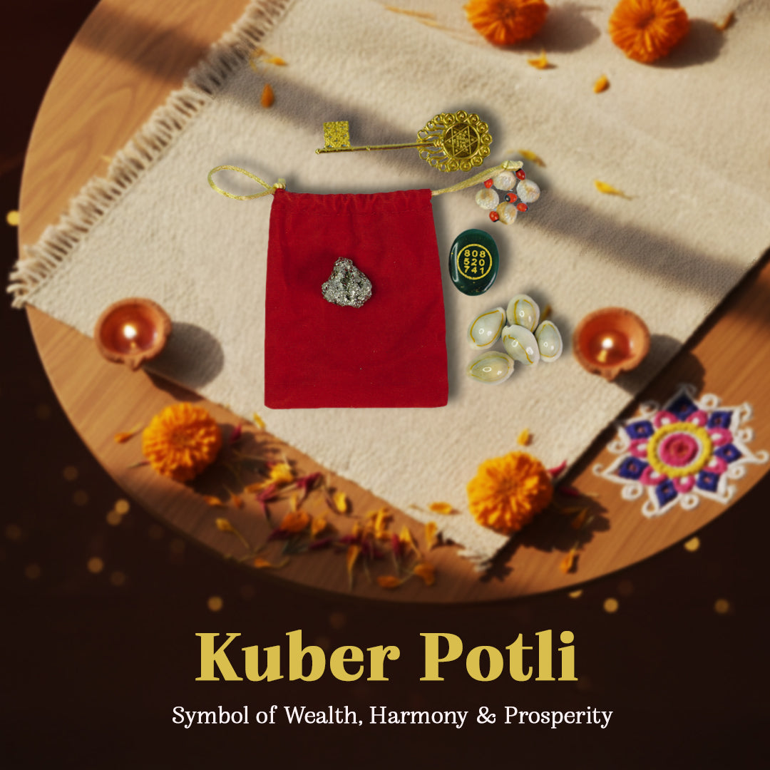Kuber Potli is a good option to buy if you are looking for the blessings of Lord Kuber, the controller of wealth & prosperity, along with Goddess Lakshmi. It not only enhances abundance in your life but also serves as a thoughtful gift for your loved ones. By installing this Kuber Potli at your Pooja Place, you start to experience positivity in your life. Lord Kuber helps you to understand the right and wrong in money-related matters so that you can avoid losses in life. During Diwali, it is worshiped to receive the blessings of Lord Kuber, the Lord of entire wealth & the Universe.