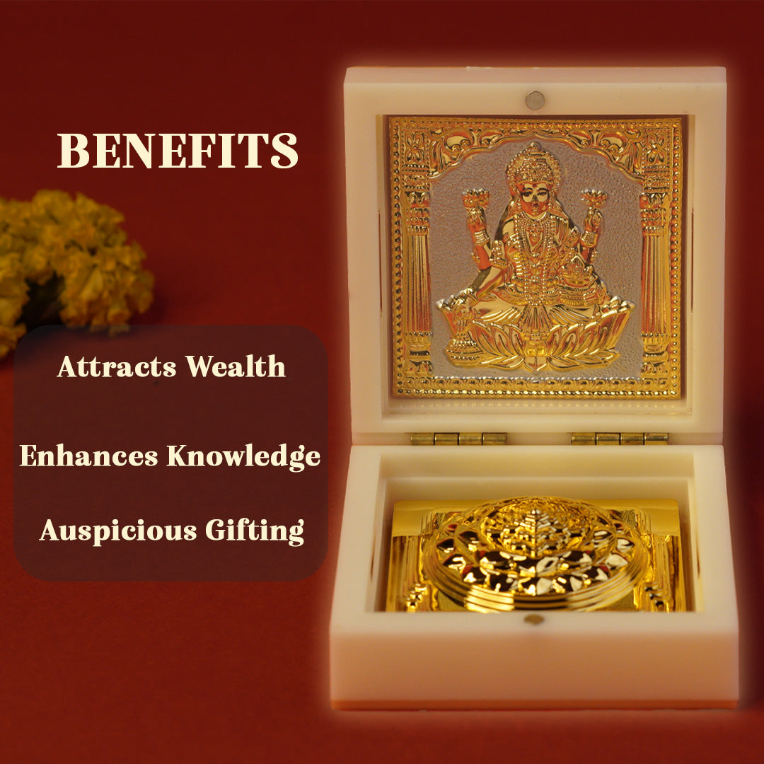 Lakshmi Shree Yantra Box is the best option to buy if you are looking for abundance and prosperity in your life. Shree Yantra is associated with planet Venus or Shukra in astrology, whose deity is Goddess Lakshmi—the Goddess of wealth, finances, and luxury—making this a powerful combination of divine connection to Maa Lakshmi. By placing it in your environment, you will receive her blessings to attract love, happiness, and luxury in your life.